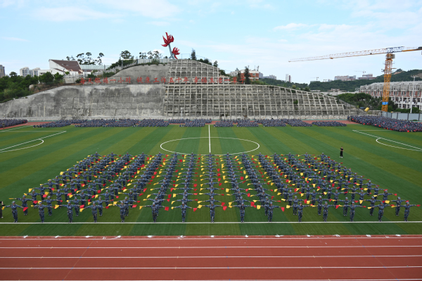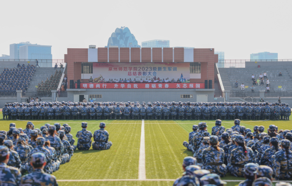 9月28日上午,我校2023级新生军训总结表彰大会在第二田径运动场举行。