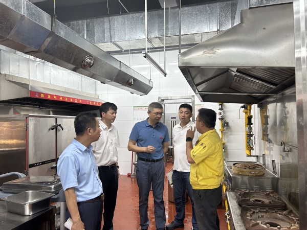 黄江昆一行前往校区高压开闭所、加压泵站及宿舍区蓄水池,详细检查了供水供电设施运行保障情况。在校区各食堂,黄江昆对食堂安全管理台账、燃气管道设施、菜品留样、食材新鲜度及品质等进行仔细检查,听取学生对食堂的意见和建议,要求各食堂负责人要确保饭菜质量,做好保供稳价,让学生吃的满意、吃的安心,并对进一步提升第二食堂餐饮质量和服务水平提出要求。在学生宿舍边坡及挡土墙现场,黄江昆详细询问边坡位移监测情况,要求监测单位严格落实监测频次。在超级大气站施工工地,黄江昆详细了解超级大气站施工进度安排,对超级大气站场地建设提出优化建议。