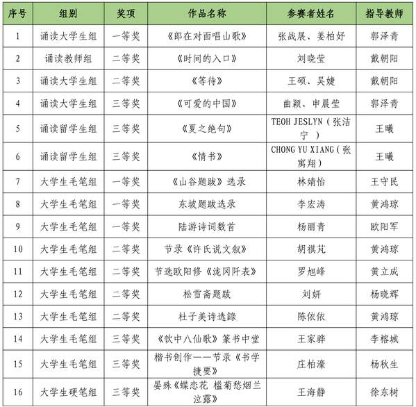 日前,福建省第五届中华经典诵写讲大赛结果揭晓,我校张战展等19人在经典诵读大赛和汉字书写大赛中获一等奖4项、二等奖6项、三等奖6项,学校获“经典诵读大赛”“汉字书写大赛”优秀组织单位称号。