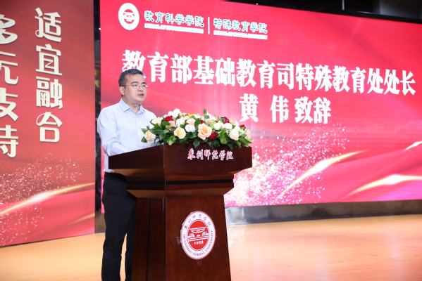 开幕式上,黄伟对此次研讨会的胜利召开表示热烈祝贺,对福建完善特殊教育保障机制、创新发展孤独症儿童教育等予以充分肯定,对我校坚持擦亮特殊教育底色和亮色及特殊教育学科专业建设成绩感到高兴,对学校构建“+特殊教育”和“特殊教育+”的办学格局,服务、支持区域特殊教育高质量发展取得的成效表示赞赏。