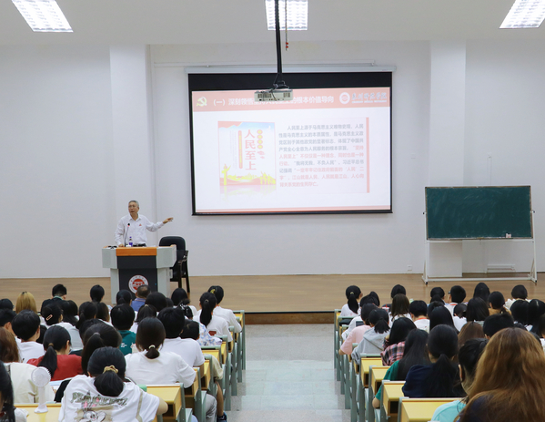 10月26日下午,校党委副书记陈晓风以“坚持不懈用习近平新时代中国特色社会主义思想凝心聚魂”为题,为校“青马工程”大学生骨干培训班、马克思主义理论读书社和海洋与食品学院等青年学生代表讲授思政课。相关单位负责人及辅导员、青年学生共280余人到场听课。