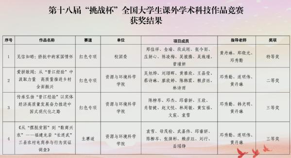 历年来,我校高度重视以“挑战杯”等高水平学科竞赛为平台的科创育人工作。此次获奖,体现了学校在培养学生创新意识和实践能力上取得的突出成绩,彰显学校三全育人成效,充分展示泉师学子科创筑梦、科创报国的良好精神风貌。