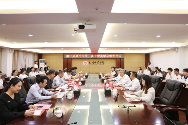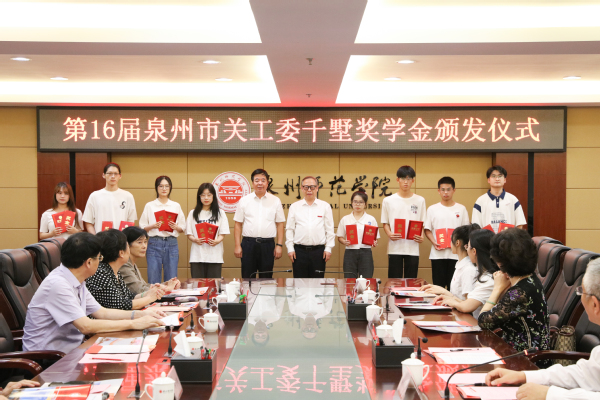 11月8日下午,第16届泉州市关工委千墅奖学金颁发仪式在我校举行。泉州市关工委主任林万明,常务副主任陈元殿、邱银富、洪飞跃,副主任郭萍萍、庄金山,副秘书长黄慧琼,校长屈广清,相关部门负责人、获奖学生参加。校党委副书记陈晓风主持颁发仪式。