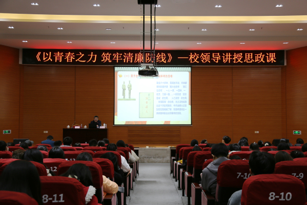 12月21日下午,校党委常委、纪委书记、监察专员陈明森以《以青春之力筑牢清廉防线》为题,为学生干部上思政课。学校青马班学员、各二级学院学生干部代表150余人到场聆听。