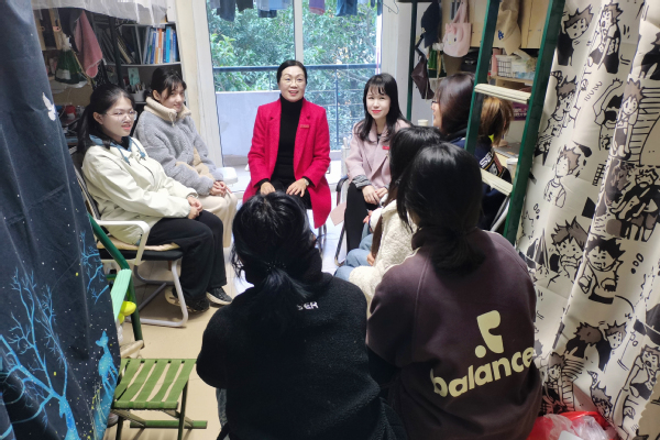 思政课结束后,陈秋燕前往学生公寓C区9号楼挂联宿舍学生,与22级化学(师范)专业同学们进行亲切的谈心谈话。化工与材料学院党委副书记兼纪委书记、化学(师范)专业辅导员陪同。(化工与材料学院)