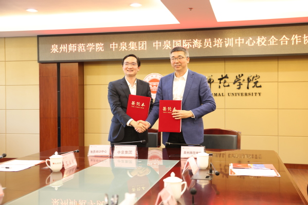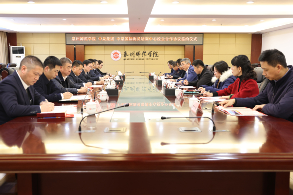 1月26日,我校与中泉集团校企合作协议签约仪式在行政楼201举行。校党委常委、副校长黄江昆,泉州发展集团党委委员、副总经理兼中泉集团党委书记、董事长苏明城,以及校企双方相关人员出席签约仪式。