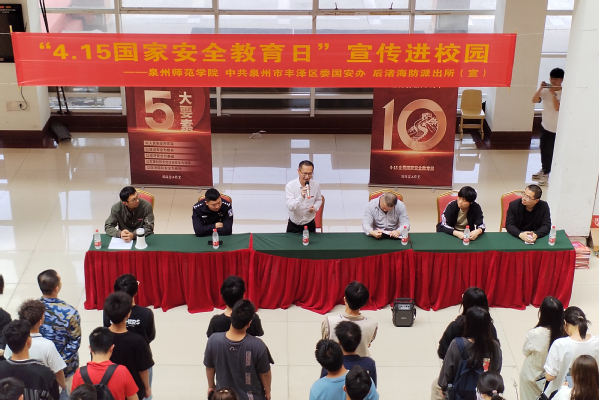 4月11日下午,学校联合丰泽区委国安办、丰泽区司法局、东海街道司法所、后渚海防派出所等,在荣茂楼一楼大厅举办“4·15全民国家安全教育日”宣传进校园活动,通过主题宣讲、设立宣传展板、发放宣传单、开展互动答题等,向师生普及国家安全法律常识、基本概念等,帮助师生正确认识和理解总体国家安全观,增强爱国意识和维护国家安全的责任感使命感。4月12日下午,在行政楼101会议室召开“4·15全民国家安全教育日”宣传培训会,通过播放专题宣传视频、现场交流答疑等方式,提增教职员工自觉维护国家安全意识。同时,学校还印发《关于开展2024 年全民国家安全教育日活动的通知》,发布学习视频、警示案例、资讯材料等;各二级学院组织开展专题宣讲、主题班会、团日活动等,让学生们树立维护国家安全的意识,增强自我保护和辨别是非的能力。
