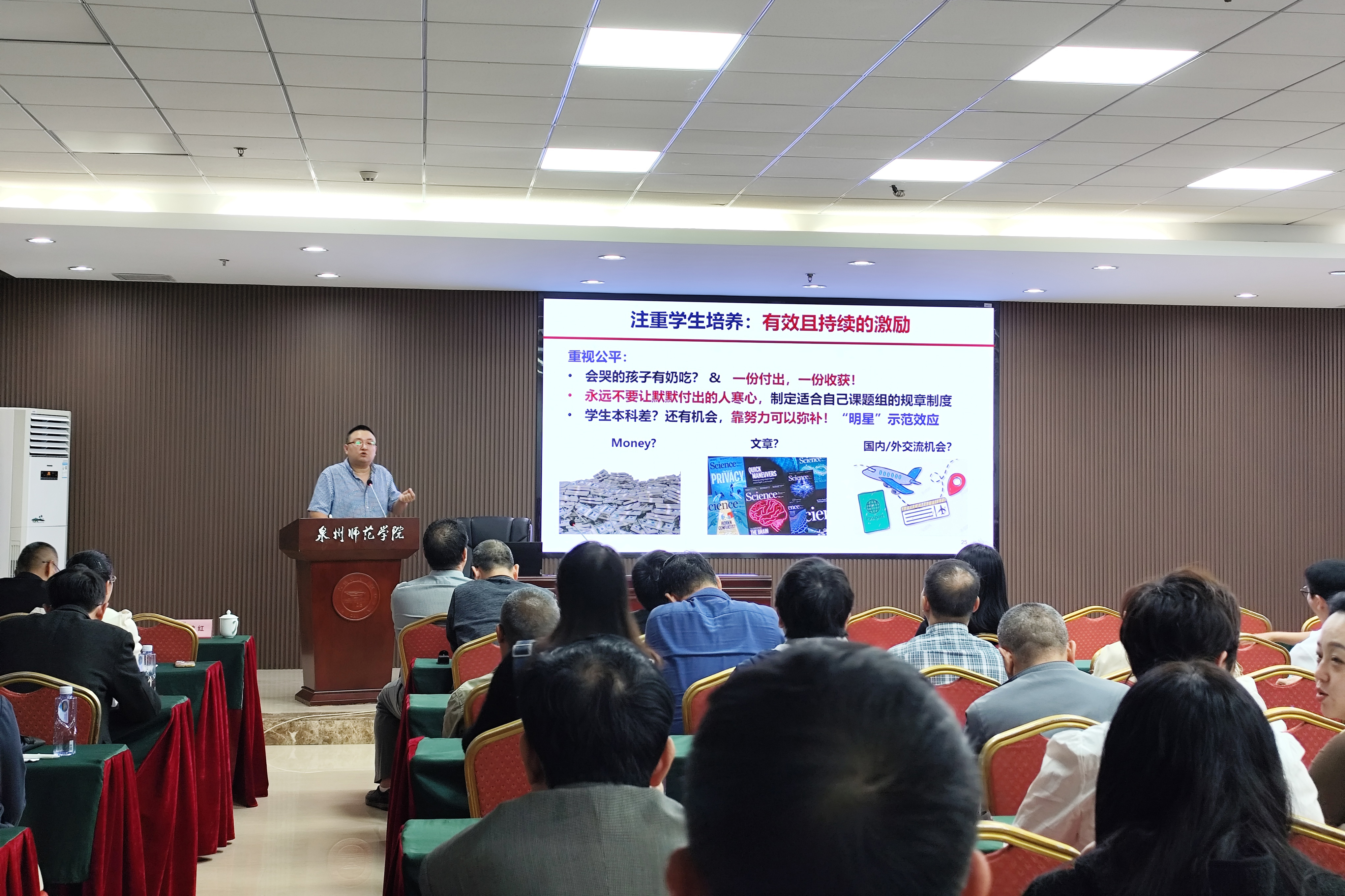 国家杰出青年科学基金项目获得者、厦门大学李剑锋教授受邀作《一些个人成长与团队建设的心得体会》的专题报告。李剑锋以个人成长与团队建设为核心,结合数十年科研与育人实践,为我校研究生导师带来了一场兼具深度与实用性的培训分享。