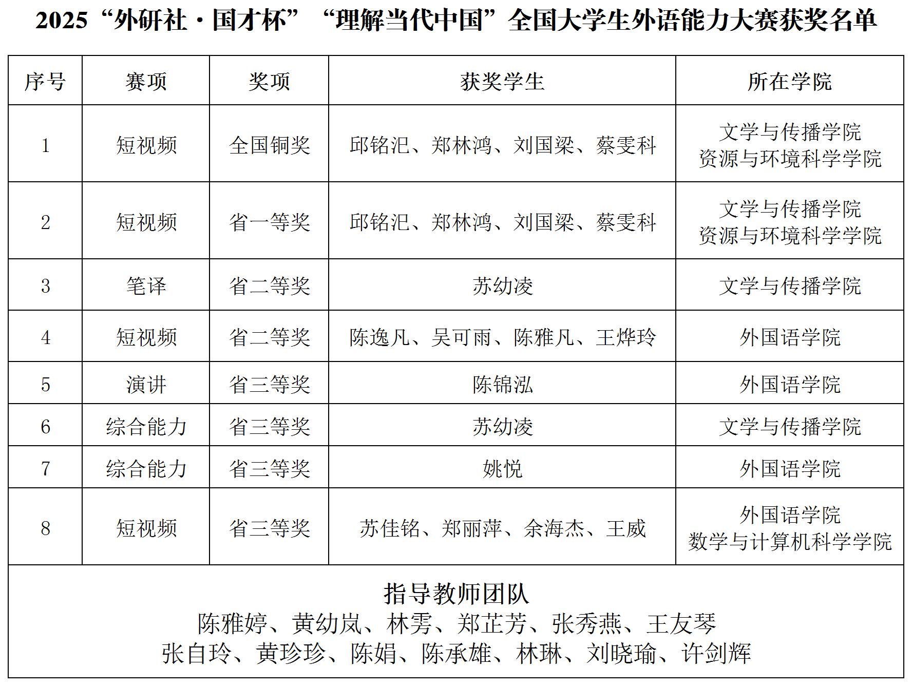 日前,2025“外研社·国才杯”“理解当代中国”全国大学生外语能力大赛圆满落幕。我校学子共摘得国家级铜奖1项,福建省一等奖1项、二等奖2项、三等奖3项。