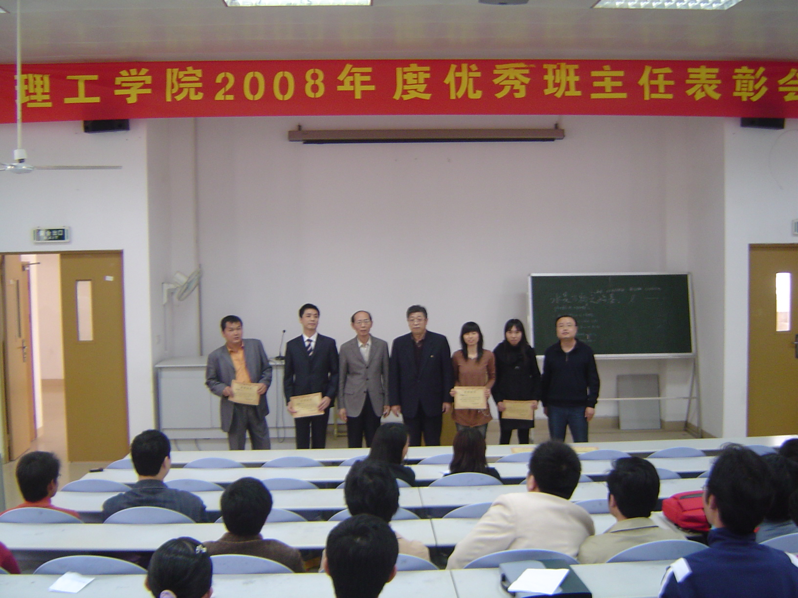 2月26日下午,理工学院2008年度优秀班主任表彰大会在理工教学楼218举行。院党政领导、全体辅导员和班主任参加了大会。为使班主任工作更规范,进一步调动班主任的积极性,理工学院于2008年11月至12月期间对班主任工作进行了总结评议,先后展开班主任自评、学生民主评议、学院评议等程序,评选出六名工作突出、效果显著的班主任。(理工学院)