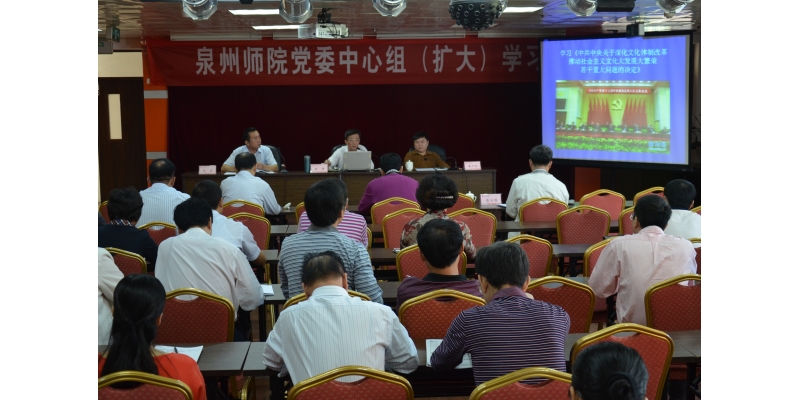 会上,赵捷书记做了《中共中央关于深化文化体制改革推动社会主义文化大发展大繁荣若干重大问题的决定》学习辅导报告。他重点解读了深化文化体制改革的意义,文化改革发展的指导思想、重要方针、目标任务和面临的新情况新问题,诠释了全会提出的一系列新思想、新观点、新理念。赵书记指出,十七届六中全会关于推动文化大发展大繁荣的决定,对于我校是一个重大的机遇,要抓住这个机遇,思考我们能做的工作,争取学校更大的发展。