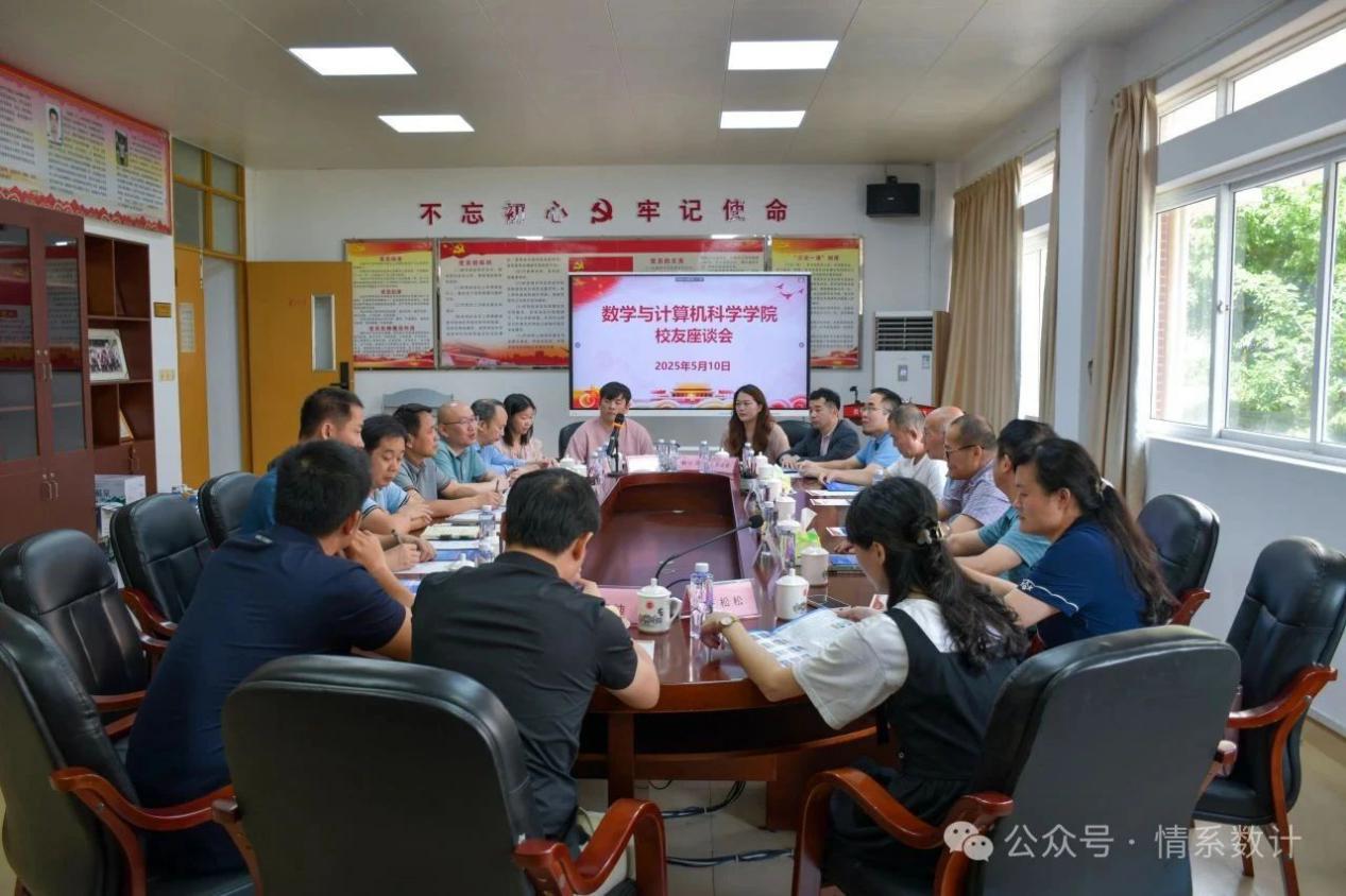 2025年5月10日,数计学院于理工209会议室召开校友座谈会。院党委书记陈章益、院长朱达欣、学院校友会会长李坚出席并讲话,原院党委书记张建成、副院长苏连塔及校友代表、学院党委委员、专业系主任、辅导员等30余人参加。座谈会由院党委副书记兼纪委书记黄争红主持。
