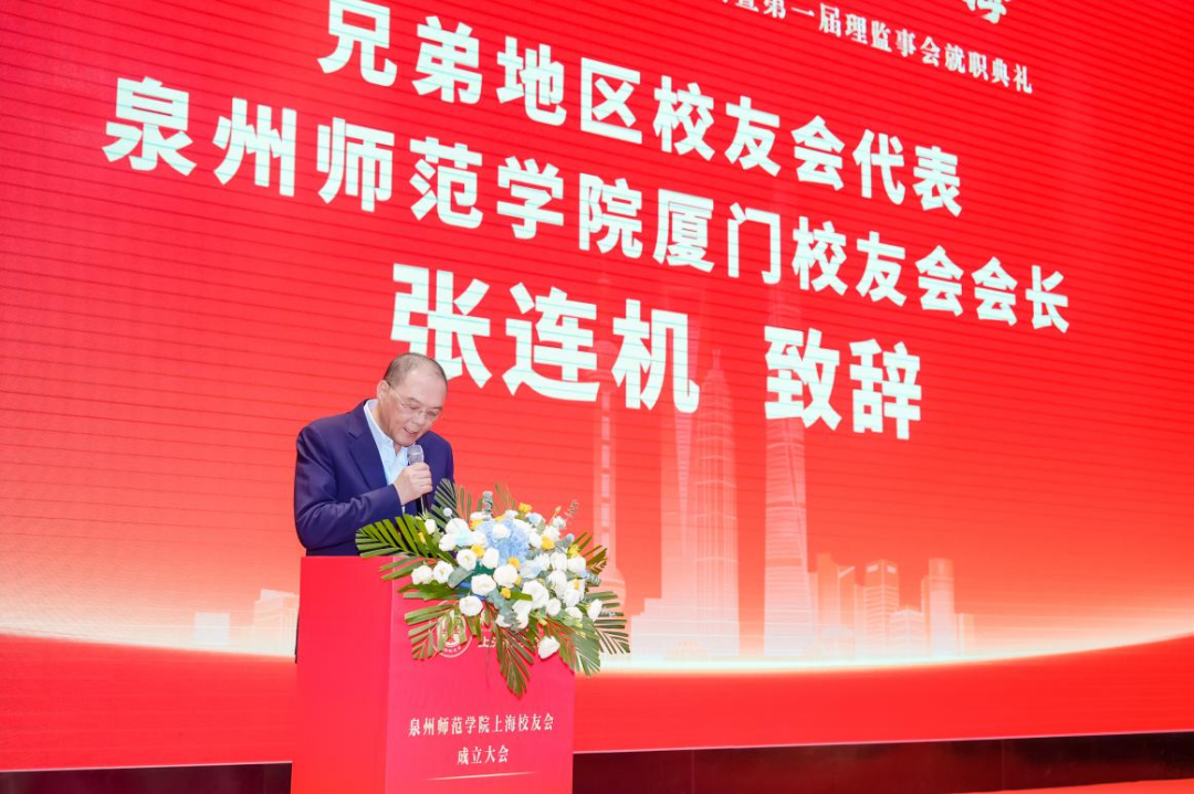 陈昌萍代表学校向上海校友会的成立表示祝贺。他指出,广大校友是泉师历史的见证者、亲历者,更是未来泉师发展的推动者。上海作为长江三角洲城市群的核心城市,历来是学校校友们创新创业的热土。校友们用实干诠释了“泉师人”的责任与担当,为上海的教育振兴、经济发展、文化繁荣作出了重要贡献,也为母校赢得了良好声誉。他希望上海校友会能成为“联结校友的驿站”,传递母校动态,分享校友资讯,让校友无论身在何处,都能感受到“泉师人”的归属感;成为“赋能成长的纽带”,积极整合多方资源,为母校与上海的交流合作搭建全新桥梁,为母校与上海的交流合作搭建新的桥梁,助力学校在人才培养、科学研究、社会服务等方面实现更高质量的发展;成为“精神传承的桥梁”,践行“敢为人先、爱拼敢赢”的泉州城市精神,弘扬“善学如泉、正心至大”的校训理念,以更好的业绩、更大的成果回馈母校的培育之恩,践行服务社会的责任担当。