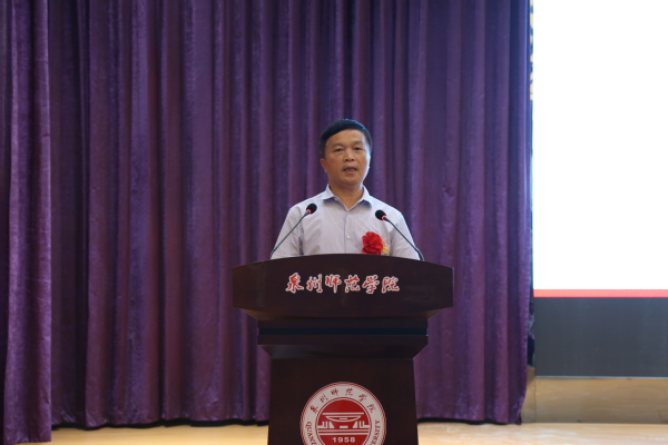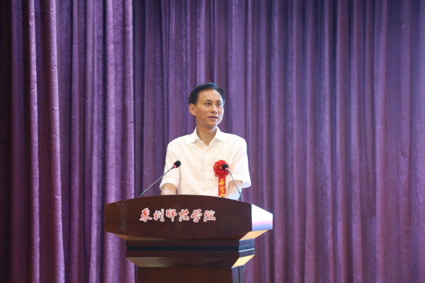 校党委书记朱世泽教授发表了热情洋溢的致辞。他代表泉州师范学院对校友会的成立表示热烈的祝贺,对莅临大会的领导、嘉宾以及情系母校、关心支持母校发展的海内外校友表示诚挚的欢迎和衷心的感谢,对长期以来关心支持泉州师范学院建设发展、指导支持成立泉州师范学院校友会的教育局、民政局领导和社会各界人士致以热忱的谢意,并就学校办学历程、办学规模、师资力量、“三步走”发展战略等情况及近期在福建省“双一流”高校建设、示范性应用型高校建设、学校发展潜力排名等方面取得的成绩向与会领导、嘉宾、校友作了简要介绍。