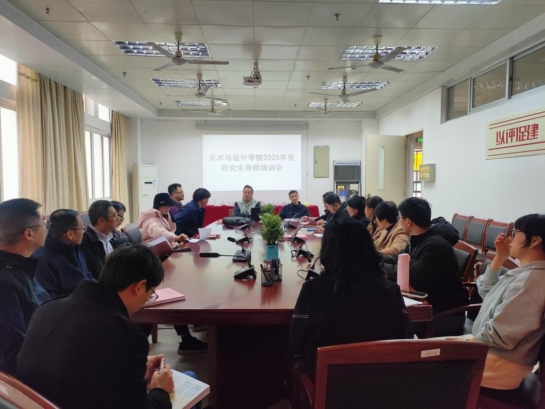 12月31日下午,美术与设计学院在美术楼213会议室举行研究生导师研讨培训活动。副院长陈超淼、陈伟长出席会议并做专题辅导,学院全体研究生导师参加。