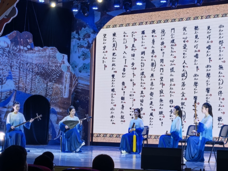 本次展演围绕海、路丝绸之路乐舞文化展开,汇聚了敦煌古乐、新疆十二木卡姆、泉州南音、敦煌乐舞等多元艺术形式的视听盛宴,系统呈现了丝路乐舞的历史纵深与艺术高度。我院师生精彩演绎了南音清唱《望明月》、单箫独拍《鱼沉雁杳》、表演唱《风打梨》以及器乐演奏《梅花操》四个节目,赢得了现场观众的热烈反响和高度评价。整场展演以乐为媒、以舞为介,在丝绸之路的文化语境中,上演了一场跨越时空的文明对话。