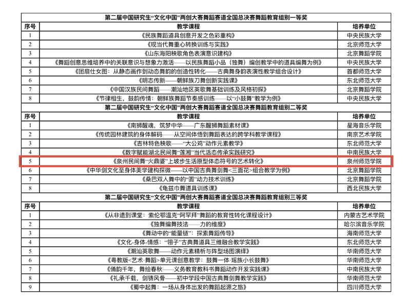 此次获奖,既是我院深耕泉州本土舞蹈文化资源、聚力培育高层次舞蹈人才的坚实成果,更是学院研究生教育理念落地见效的生动体现。在研究生培养过程中,我院始终坚守“理论与实践深度融合、文化传承与艺术创新双向赋能”的核心思路,将传承创新意识有机融入教学、创作、实践全链条,以扎实的育人行动,为中华优秀传统文化的创造性转化与创新性发展注入活力,为舞蹈学科的高质量发展持续贡献力量。