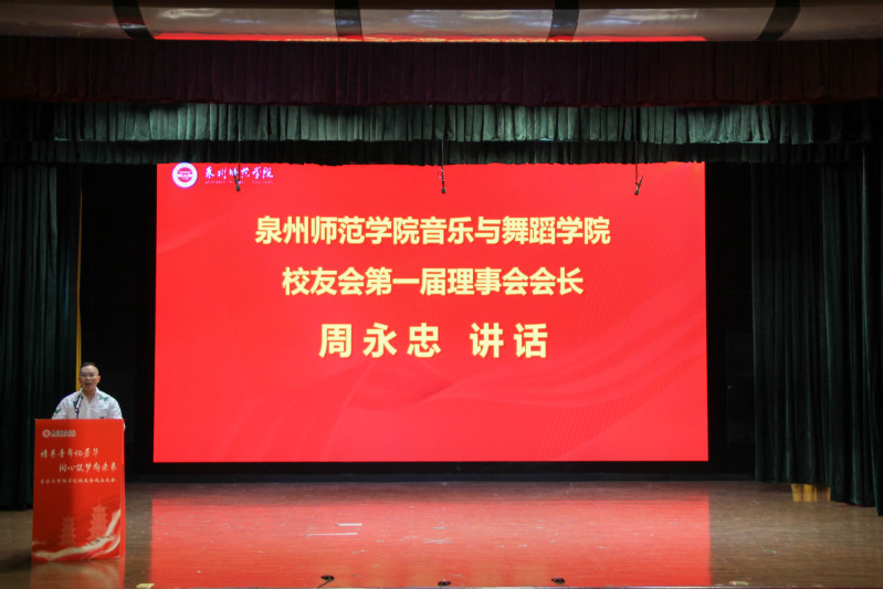周永忠在发言中表达了对母校培育之恩的感激,并表示将团结广大校友,秉持“服务校友、回报母校、奉献社会”的宗旨,不负泉师音舞人的光荣称谓!