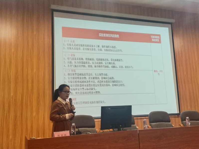 接着,陈丽娥结合高校实验室安全特点,以近年来国内外典型实验室安全事故案例为切入点,通过图文分析深入剖析了事故成因与惨痛教训。她指出,实验室作为科研学习的重要场所,电气设备等潜藏多重安全隐患,必须严格遵守操作规范,将"安全第一"理念贯穿实验全过程。