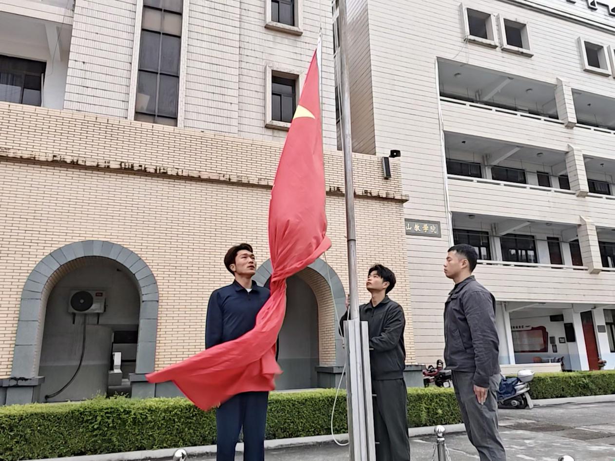 7时,升旗仪式正式开始。伴随着铿锵有力的出旗曲,护旗手们迈着整齐矫健的步伐,护卫五星红旗走向升旗台,全场气氛庄严肃穆。激昂嘹亮的《义勇军进行曲》奏响,鲜艳的五星红旗随风冉冉升起。全体师生肃立注目,齐声高唱国歌,表达对祖国的崇高敬意与美好祝愿。