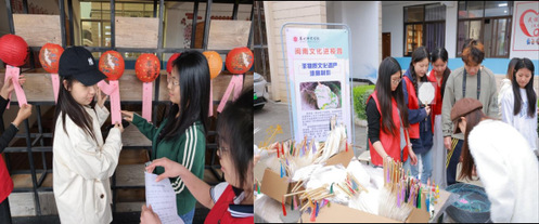 在漆扇制作区,素白的扇面在同学们的手中绽放出别样光彩。闽南文化猜谜环节则为活动增添了不少趣味,一串串红灯笼下悬挂着融合闽南民俗、方言、风物的谜语,师生们三五成群、争相猜答,在解谜的欢声笑语中重温闽南文化知识,在互动交流中加深对闽南地域文化的理解。