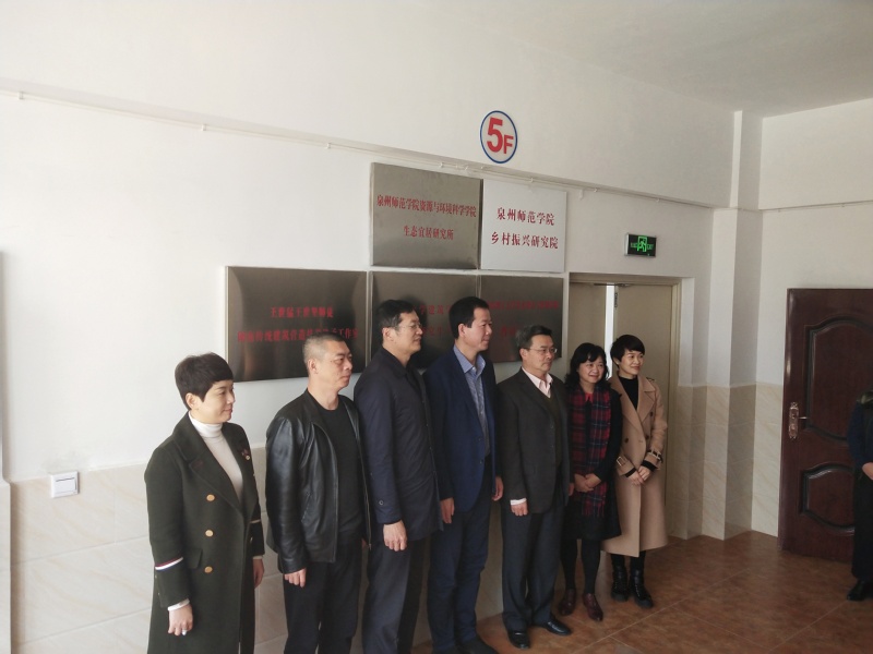 2019年2月23日,泉州师范学院乡村振兴研究院、泉州师范学院资源与环境学院生态宜居研究所揭牌仪式在晋江市九十九溪田园风光项目隆重揭牌,晋江市李志强副市长、晋江市农业局李友加局长、福建省晋江文旅集团有限公司柯惠玲总经理、泉州师范学院高云程副书记、泉州师范学院科研处戴聪杰处长、泉州师范学院资源与环境科学学院李子蓉院长及资源学院各专业主任等出席揭牌仪式。