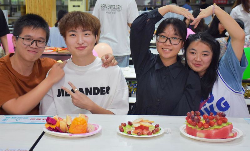 活动以“解手链”“一元五角”“传声筒”等小游戏暖场,营造热烈、活泼、轻松的活动气氛。随后进入本次活动的核心“水果大派对”水果拼盘活动。同学们充分发挥想象力和创造力,根据个人喜好和当下心情挑选水果,精致切分,巧妙拼合,创作创意水果拼盘。期间同学们相互交流创作灵感,碰撞奇思妙想,体会团结互助、守护相望的团队协作精神,感受生活乐趣,将本次活动的气氛推向高潮。最后,同学们纷纷在活动展板上书写感言,为本次活动画上一个圆满的句号。
