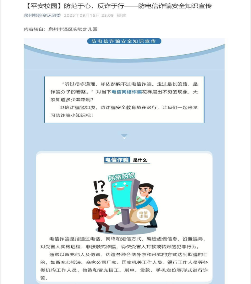 为深入贯彻落实《福建省教育厅关于印发福建省2025年秋季开学季防范电信网络诈骗宣传月工作方案的通知》文件精神,资源与环境科学学院于9月7日至9月25日,以“青春无诈、开学慧防”为主题,集中组织开展了防范电信网络诈骗宣传月活动。学院积极拓展宣传渠道,创新活动形式,组织开展了一系列内容丰富的防诈宣传教育活动,全面提升师生防范意识和能力。
