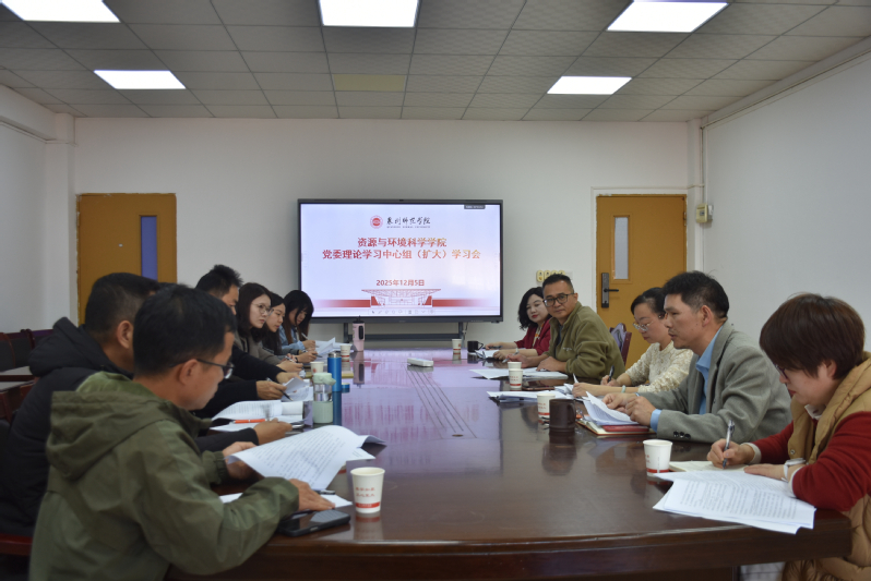 12月5日,资环学院在邱天生实验楼428会议室召开党委理论学习中心组(扩大)学习会,学习贯彻党的二十届四中全会精神,集中开展专题研讨。会议由学院党委书记胡秋娇主持,学院班子成员、党支部书记、各办公室负责人参加会议。
