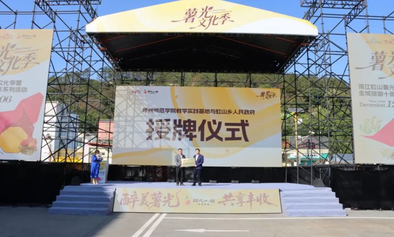 2025年12月6日,洛江区虹山乡人民政府举办的“薯光文化季暨全域旅游十周年”系列活动隆重开幕。活动现场,我院副院长(主持工作)陈永山应邀出席,并为虹山乡人民政府正式授予“泉州师范学院专业实践基地”牌匾,标志着校地合作赋能乡村振兴步入深度融合、共谋发展的新阶段。